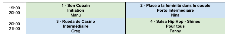 1 - Son cubain : viens découvrir le Son Cubain. Tu pourras ensuite enchainer le dimanche pour le cours Débutant